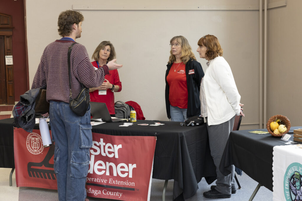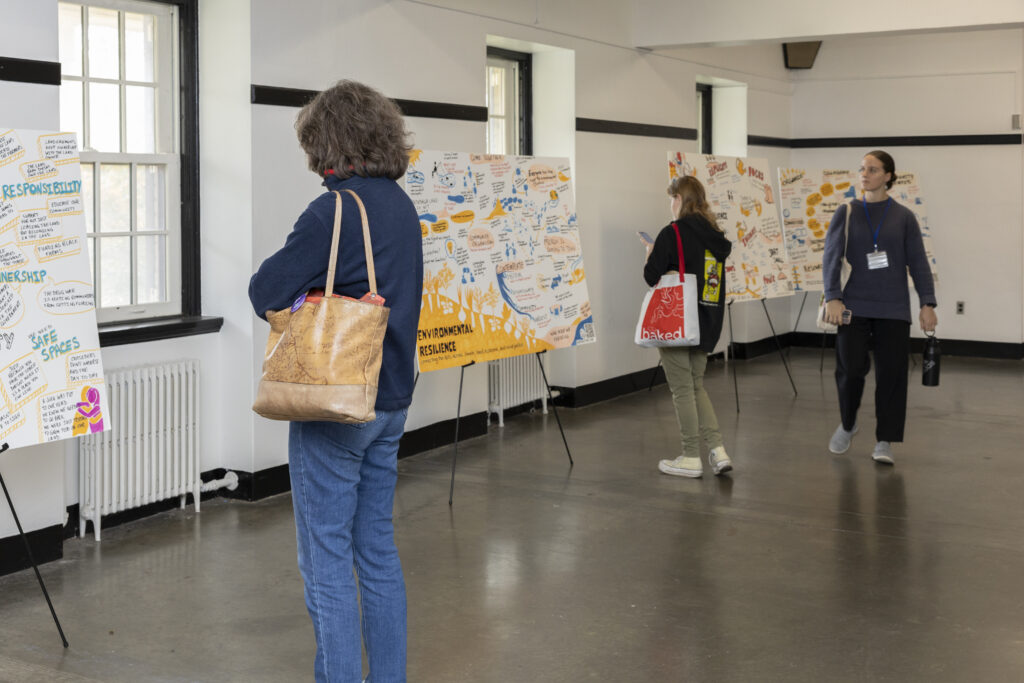 The day started with breakfast from Fair Deli and a sneak peek at the main hallway’s later activities. Folks took their seats in the main room for the Opening Ceremony, which began with a call to action to support Indigenous communities delivered by Curtis Waterman, of Onondaga Nation. Then keynote speaker, Robin Wall Kimmerer, acclaimed author and scientist, gave powerful testimony to the strength of connection and interdependence of human beings with the natural world. Click here to see an excerpt from Robin Wall Kimmerer’s keynote. Following Kimmerer’s address, Syeisha Byrd, Commissioner of the Department of Parks, Recreation and Youth Programs offered an insightful dialogue on the importance of civic engagement. Mary Nickson, artist and activist, closed out the Opening Ceremony with an original song “Together” centered on the interwoven theme.