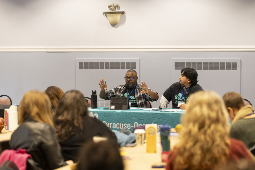 The day came to a close as the sessions ended and folks made conversation in the hallways. Many attendees turned their attention to supporting the breakdown of the event, turning the “many hands make light work” cliche into a heartwarming actuality. As we look forward together, SOFSA continues to seek avenues for our movement building and inspiring our collective resilience here in central New York, New York state, and beyond. Despite the many challenges we are currently facing, when watching folks move, connect and grow with one another, we at SOFSA are more focused than ever in our collective resistance to the status quo.
