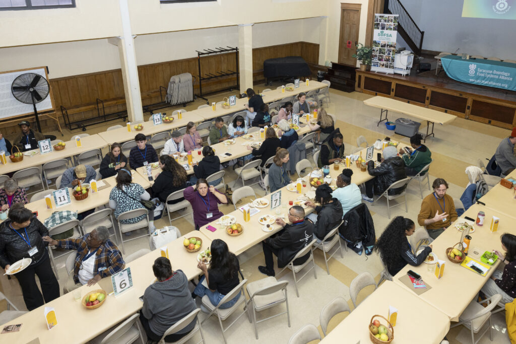 On Saturday, October 26th, 2024, SOFSA hosted our second annual Food Justice Gathering at Plymouth Congregational Church in downtown Syracuse. Organized around the theme of “Cultivating Resilience,” the Gathering was inspired by the thoughtful organizing–both presently and historically– of communities working to meet their needs amid a changing landscape. Throughout the day attendees sought to nurture interdependence, share wisdom, and shift into a mindset of abundance.