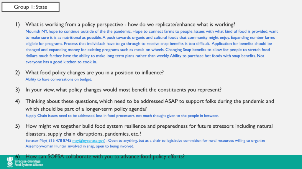 Food Policy Coffee Hour with Senator Rachel May and Assemblywoman Pamela J. Hunter